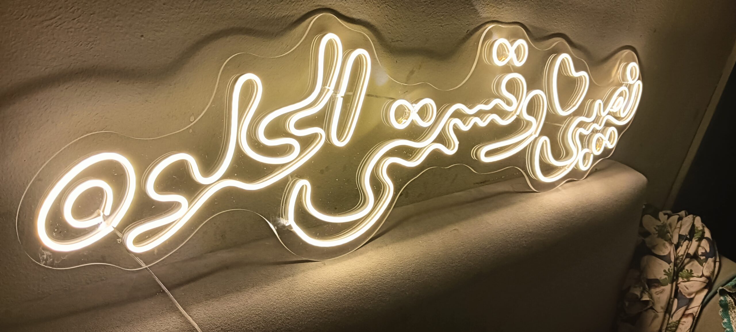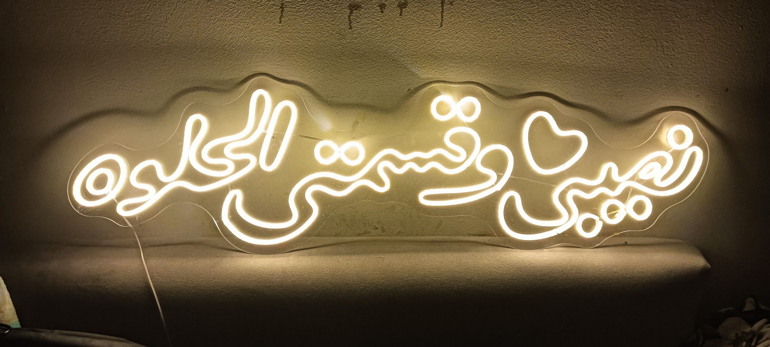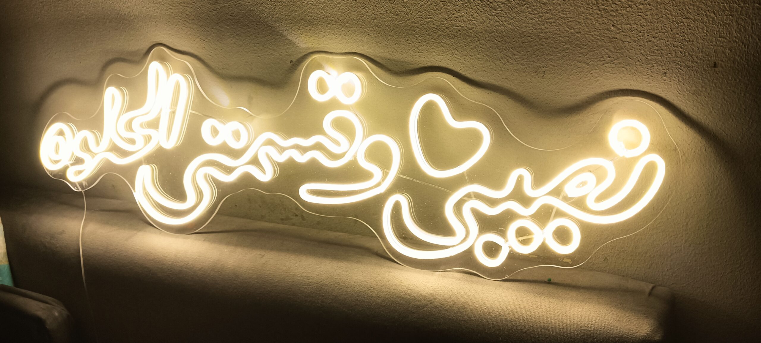 أضف لمسة ساحرة لأجمل لحظاتك مع لوحة النيون المضيئة المصنوعة من خامة الأكريليك الفاخر بسُمك 8 ملم، بتصميم أنيق ومميز يناسب حفلات الزواج والمناسبات الخاصة.