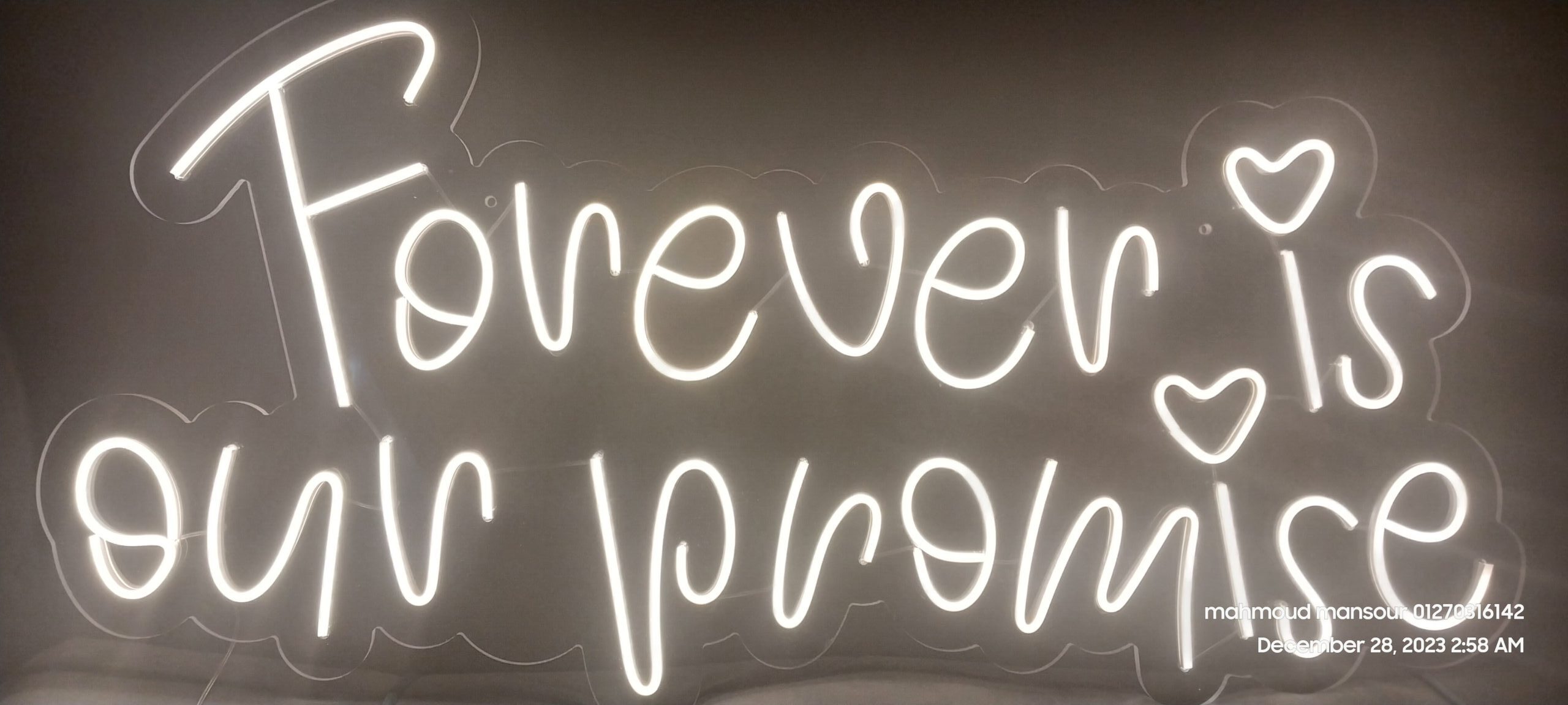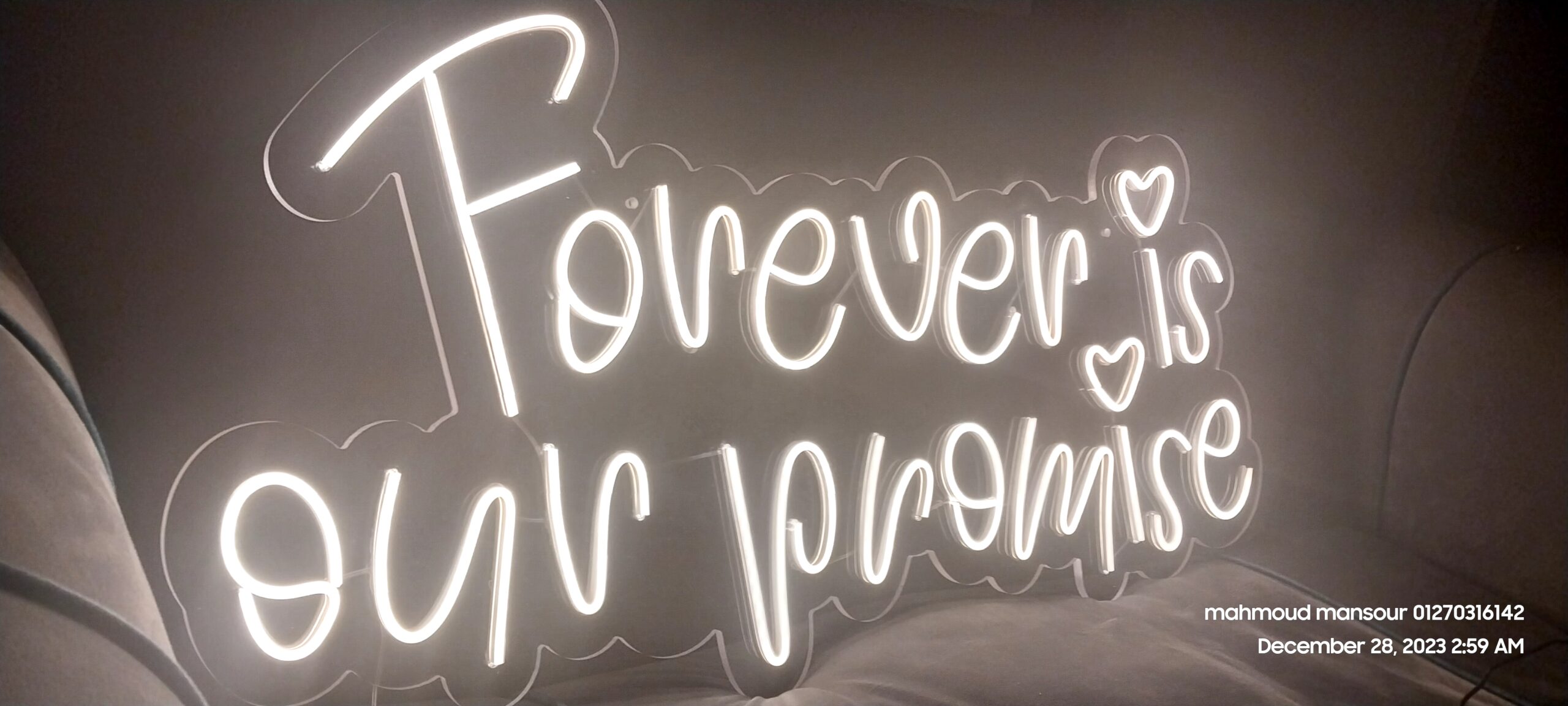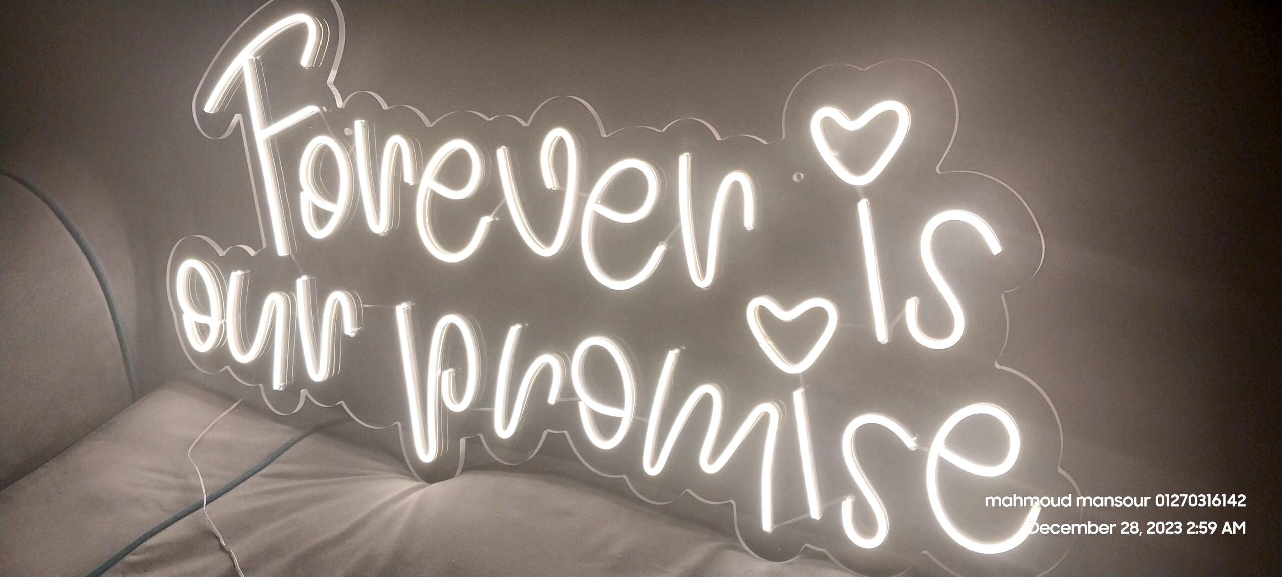 أضف لمسة ساحرة لأجمل لحظاتك مع لوحة النيون المضيئة المصنوعة من خامة الأكريليك الفاخر بسُمك 8 ملم، بتصميم أنيق ومميز يناسب حفلات الزواج والمناسبات الخاصة.